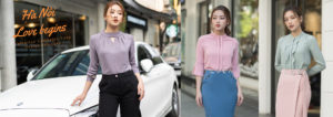 Loza giới thiệu mẫu thiết kế hot nhất đang làm mưa làm gió trên thị trường hiện nay. Mẫu thiết kế gồm quần tây tối màu và áo sơ mi phối kiểu.